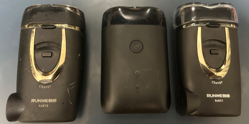3、最右边的是今天到手的朗威Rs831,价格39元,买了就试了下,跟Rs831一样,刮的很干净,而且是自带充电插头的,目前很满意。