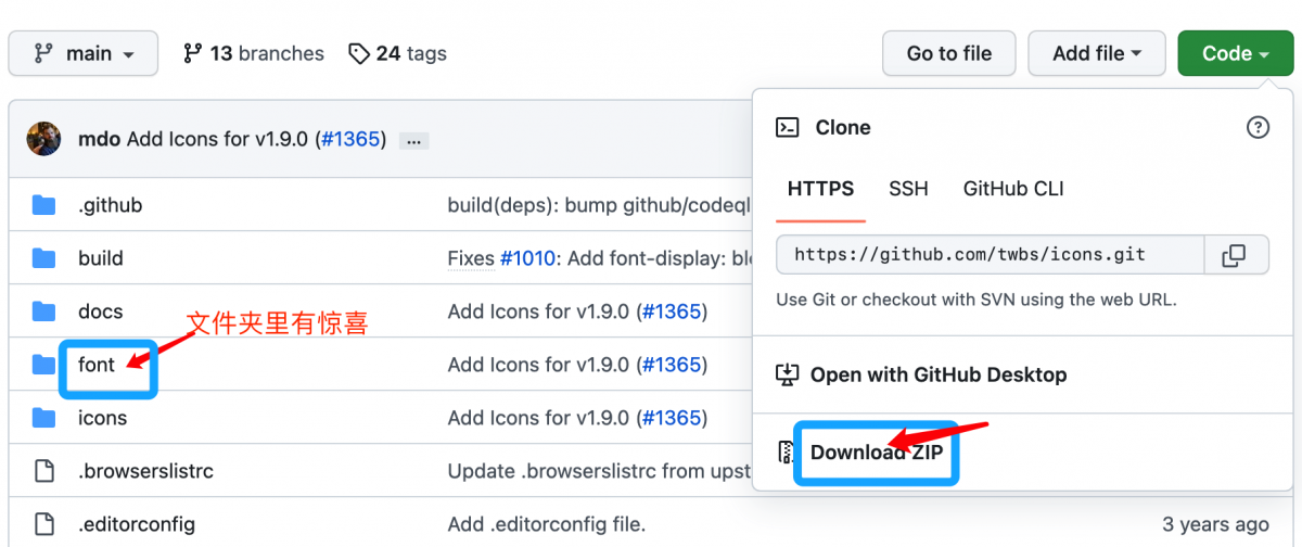 到bootstrap-icons官方的github上下载最新的包,官方github地址:https://github.com/twbs/icons