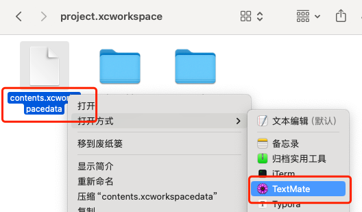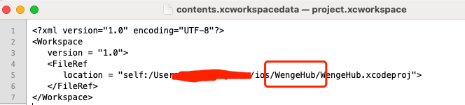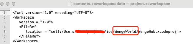3.3、用合适的文本工具打开contents.xcworkspacedata文件