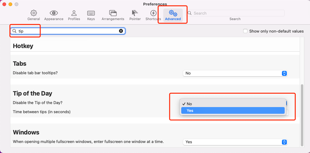 可以在设置的Advanced选项卡里搜索tip,找到Tip of the Day,更改为yes,即可关闭每日提醒