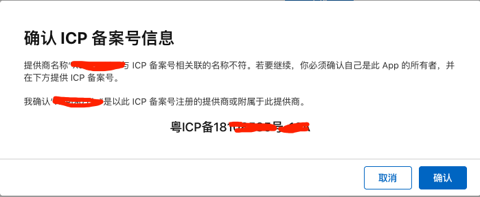 这里如果你是备案通过后,隔了12个小时以上再去AppStore connect上操作的话,不会遇到下面的问题。