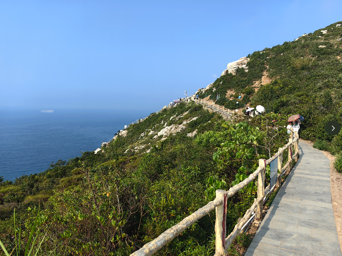 1、上天文台观光车10元,步行的话20分钟到30分钟。观光车终点就是栈道,如果不上天文台直接下到海边,就是一小段平路加大部分下坡。