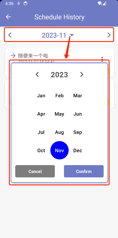 左右切换上一月和下一月这个功能比较好实现,弹窗显示年月选择这个功能,Android和ios默认的组件都没有这个功能,需要自己开发。