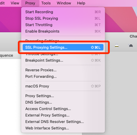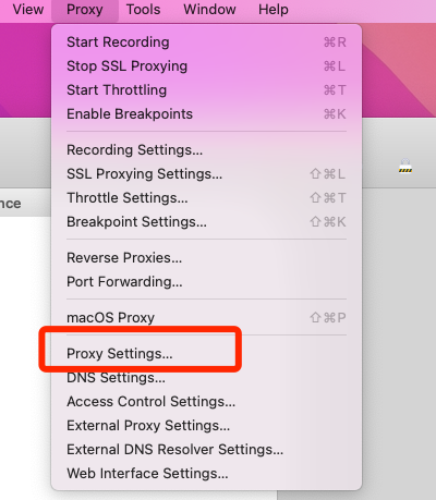 在菜单栏Proxy->Proxy Settings,这里可以查看代理端口