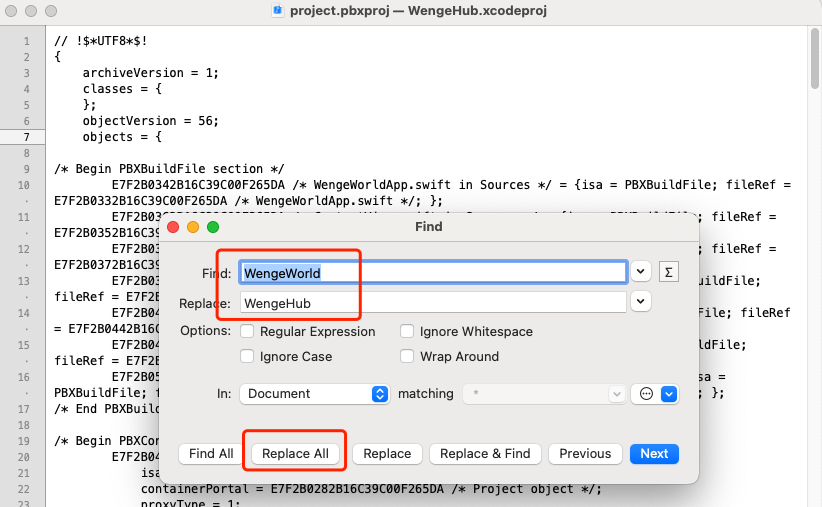 2.2、用合适的文本编辑器打开project.pbxproj
