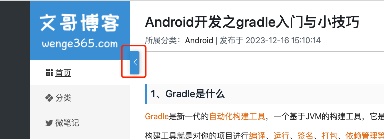 一直想给文章详情页面增加一个隐藏侧边栏的按钮,现在终于加上了这个功能。