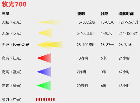 举例,远光模式下,续航时间还会有较大变化,是因为可通过无极调光来调整灯泡亮度,因此造成了续航时间的变化。