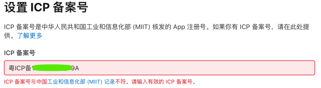 2.1、昨晚23:13收到短信,于是在零点多一点去AppStore后台填写备案号,报如下错误: