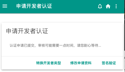 上面的都做好了,然后会提示等待开发者认证。咱就等着吧。