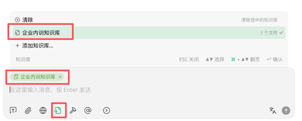 3.3.6、在对话框选中刚刚添加的知识库