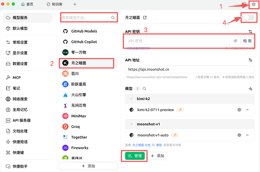 2.2.1、在设置页面添加大模型