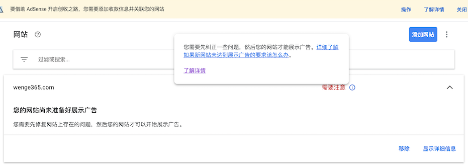 去看了,貌似网站没有展示广告,不知道怎么回事,审批状态是准备就绪,ads.txt状态是未找到,不知道是不是找不到这个ads.txt影响的,可是我的ads.txt这个文件也明明存在,明天再研究吧。