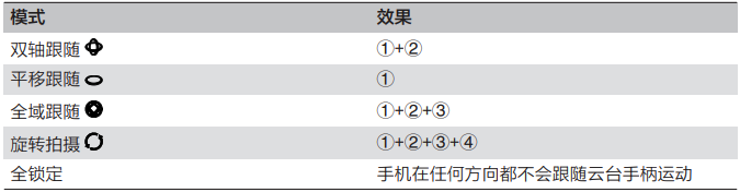 双轴模式:手机左右移动+俯仰移动(开机默认模式)