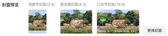 视频号的封面如上图,三种比例不能单独设置,比较恼火。最后只能用16:9的图片作图,然后文字显示在3:4的区域里面。