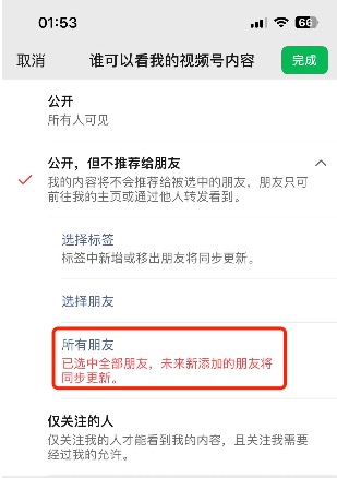 2、设置“谁可以看我的视频号内容”