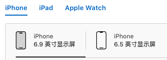 iPhone只需要上传6.9英文显示屏和6.5英寸显示屏,实际上6.5英寸的可以不用制作,如果你不单独上传的话,苹果会默认使用6.9英寸的图片。